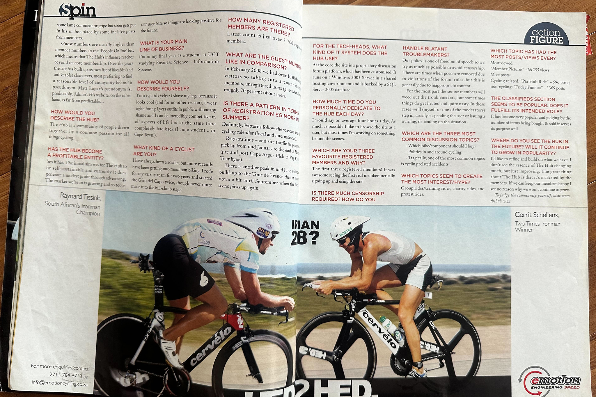 In 2008, The Hub SA was featured in Bicycling Magazine (April 2008, Vol 6, No 2), marking a significant moment in our journey.