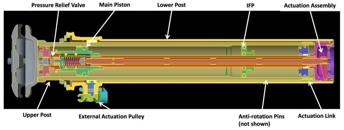 - Hydraulic design features large diameter Piston and Spool Valve to regulate seatpost movement