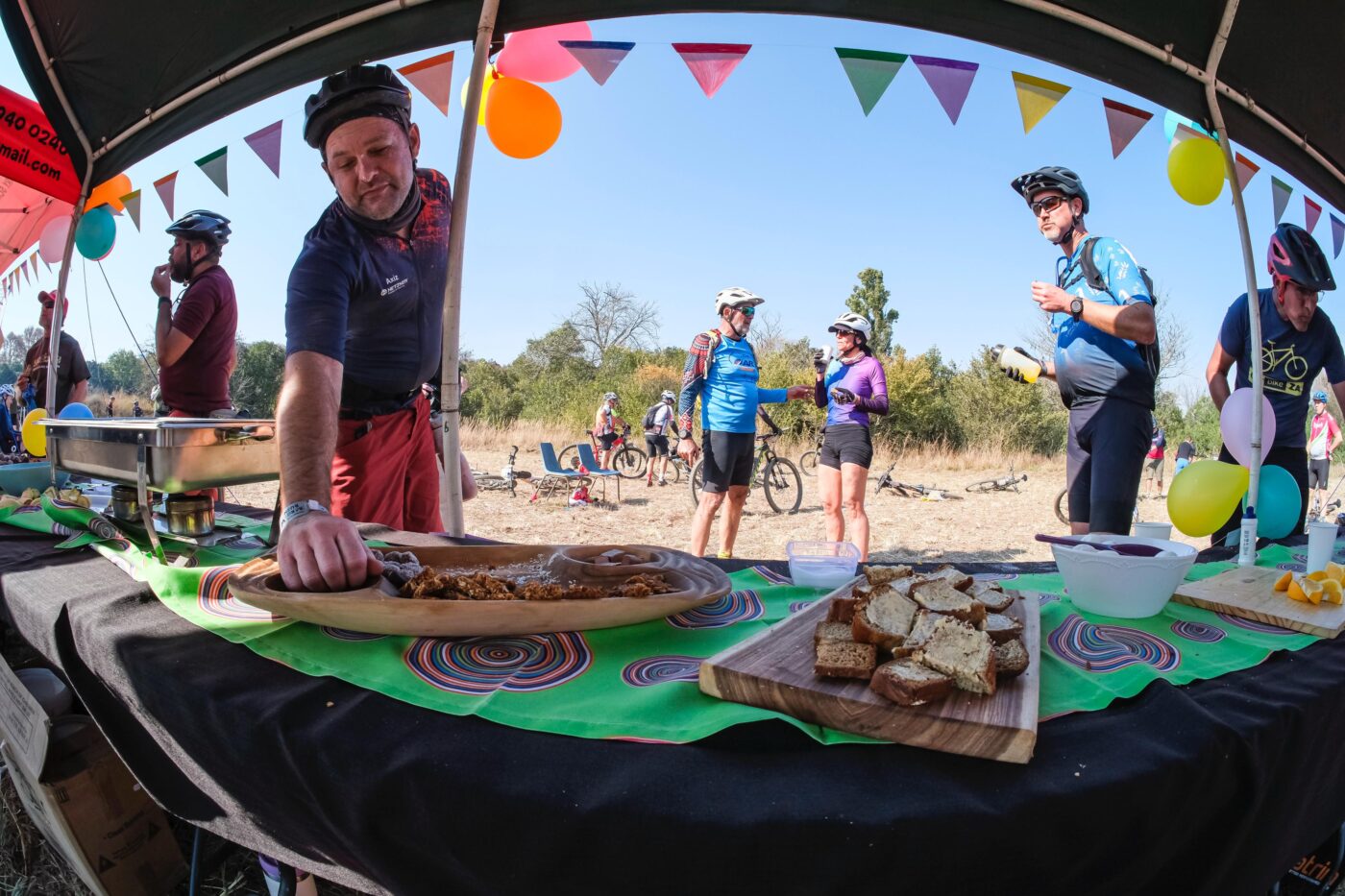 In a handful of years at the helm of the event, the pair, aided and abetted by members of the Green family and a tight-knit team of Winterton locals, have transformed Berg & Bush into a ride with flair, fun and free-flowing trails (not to mention some country glitz and glam – wine tasting on the banks of the Tugela River, anyone?). A particular area of focus has been the upgrading of tents and the food provided in the race village and at the refreshment tables. Even the most basic tents now come with beds, while the food is an annual Berg & Bush highlight.