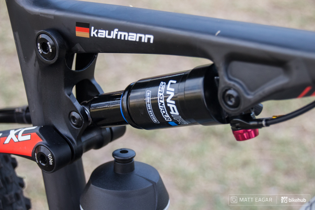 The Numinis is finished off with Tune Black Burner rims on Tune Kong (rear) and Princess Skyline (front) hubs. The tyres are from Schwalbe with a Rocket Ron on the rear. The front tyre looked very similar to the rear Rocket Ron but was unmarked and the mechanics at Centurion Vaude were unwilling to provide us with any information. A prototype perhaps.