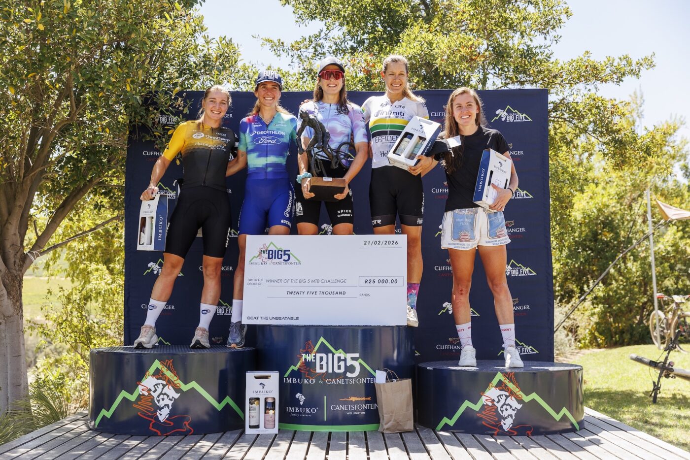 Whilst there is often a bit of a chill pre-dawn at The Big 5 by Imbuko Wines and Canetsfontein, there was no need for warm layers in 2026. It was going to be a hot day in the Hawequa mountains. With the largest field of participants in the event’s history shuffling into the start chute of the new venue, and some of the best bike racers in the world assembled under the arch at the front of the mass, there was no doubt that it was going to be a day of exhilarating racing action and profound personal undertakings.