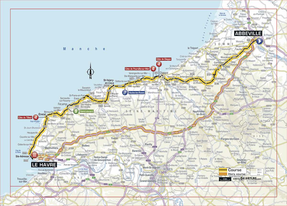 Stage 6 takes the riders on a scenic 191.5 km route along the coast from Abbeville to Le Harve. The sprinters are expected to race for the win despite a slight climb to the line. The Stage 6 prize, a GoPro Hero action camera, will go to a team boss with the white jersey holder in their team at the end of Stage 6.