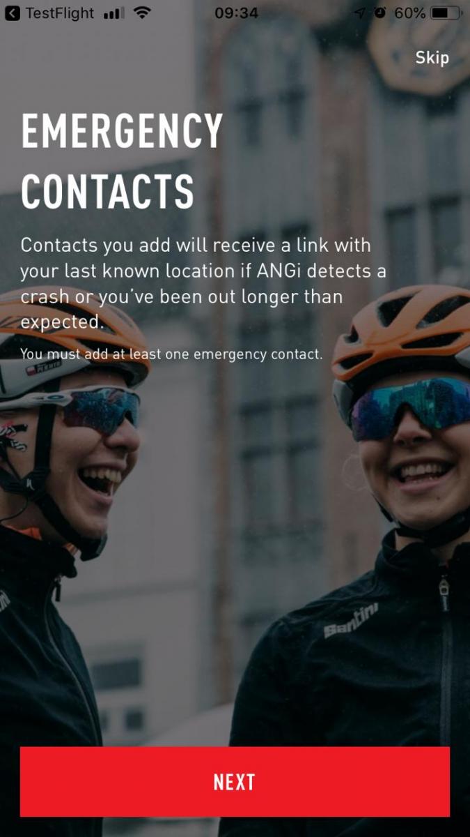 The Ride App is a necessary part of the ANGi ecosystem acting as the communications hub for the ANGi sensor on the helmet. The app uses the phone’s data connection to send out emergency messages and location information. The Ride App will also record your activity data like ride time, distance, route, etc. It can be linked to Strava so that the ride will automatically appear there too.