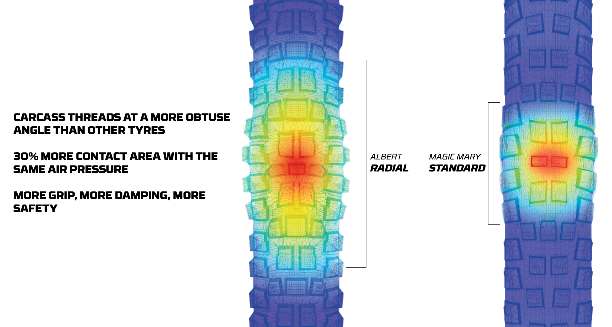 Schwalbe has once again pushed the boundaries of tyre technology with their revolutionary Radial Carcass construction. This innovative design offers a number of significant advantages: