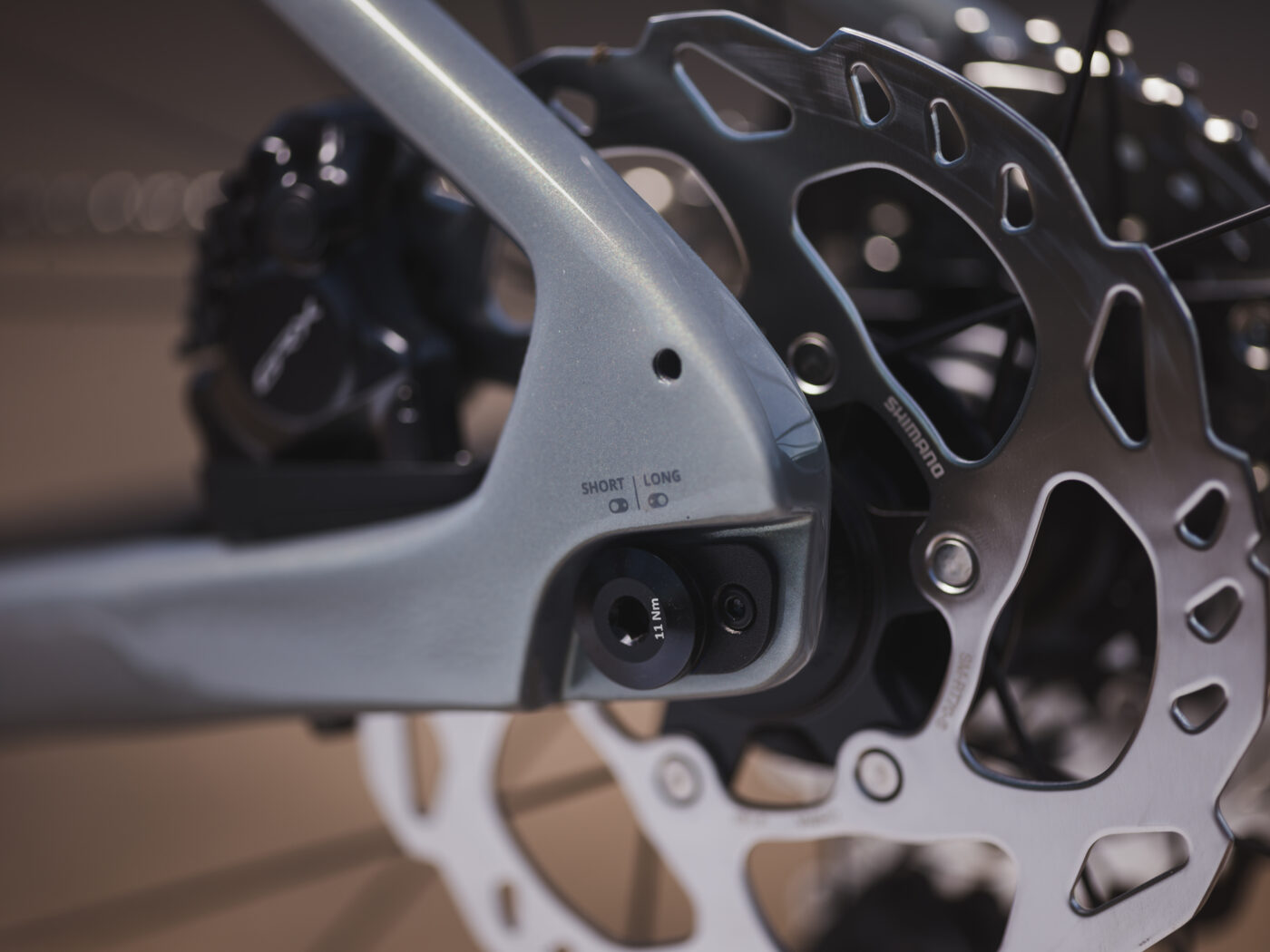 A quick and simple adjustment on Revolt gravel bikes lets you fine tune your bike for the way you ride. A two-position flip chip located on the rear dropout changes the wheelbase, along with rear-wheel tire clearance, so you can get the best performance out of the bike depending on the terrain and your riding style. This integrated system consists of eccentric, offset hardware that can be easily loosened, removed and flipped to the long or short setting using common tools.
