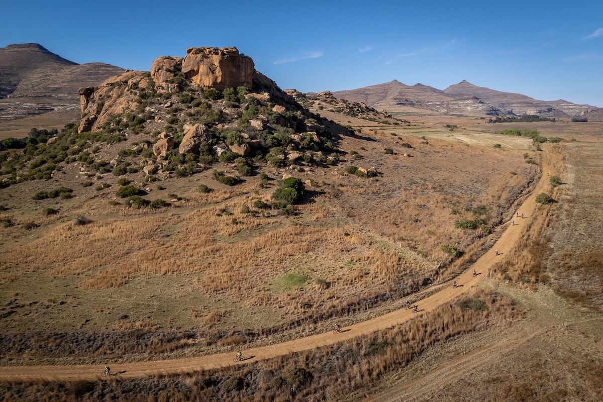 At the top of the climb there is a great spot to stop. You can look back at the Maluti Mountains and see what you’ve achieved on the stage. Looking ahead, you’re met with the most unexpected sight: the “Sea of The Free State” – Sterkfontein Dam: South Africa’s largest earth-filled dam. We were lucky enough to ride along the kilometers-long dam wall too. And before that, Mount Paul is not only a climb. There is also a fun, fast open single track descent which is a real test of skill to handle at speed.