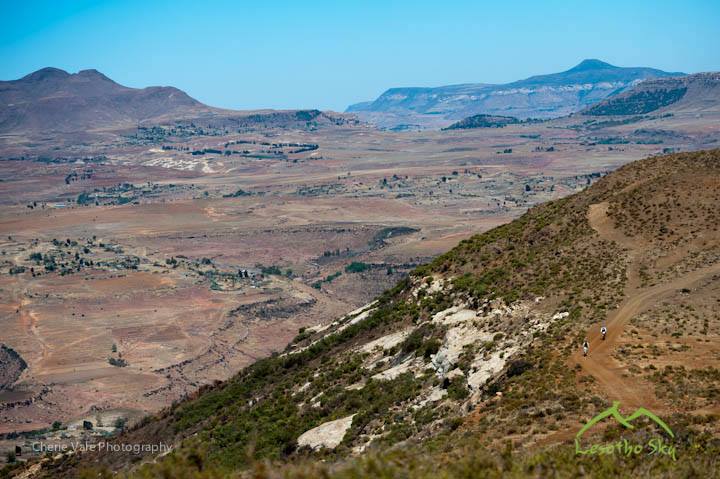 From the camp at Malealea Lodge we soon start climbing a pass named the Gates to Paradise. And once at the top the view certainly lived up to the title. Looking back over Malealea and beyond to the distant mountains was a phenomenal scene only enhanced by the perfect morning.