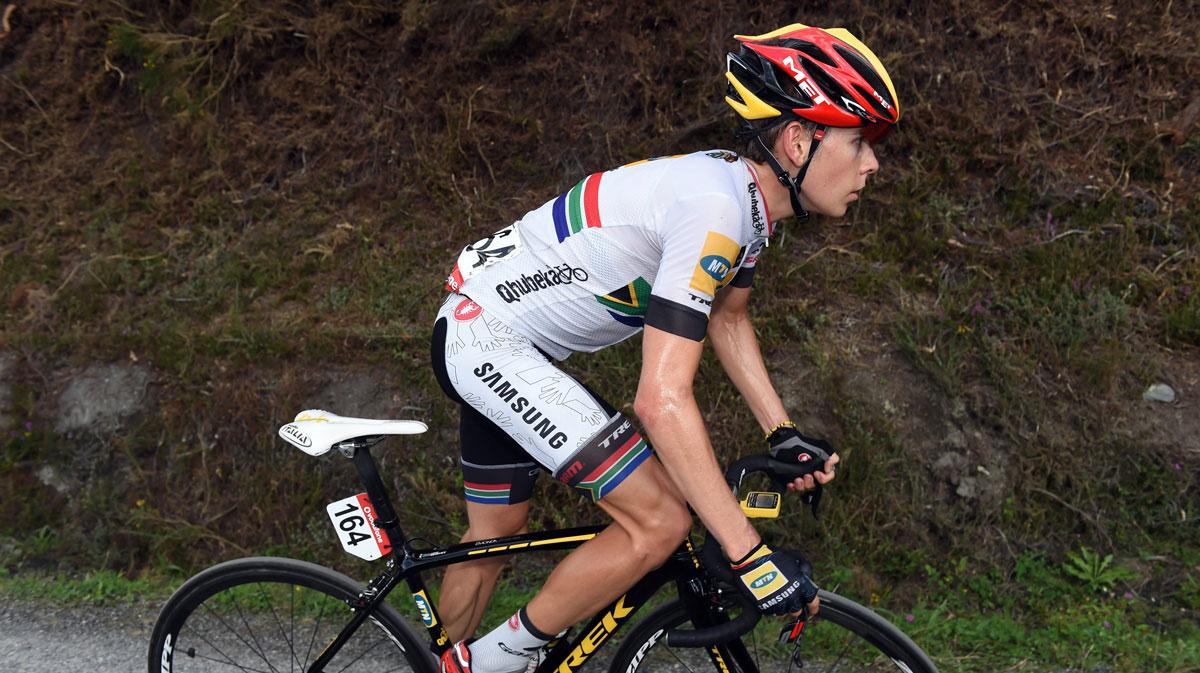 Przemyslaw Niemiec (Lampre-Merida) was the last surviving rider of the break to be caught just before the out of category climb to Ancares. Team MTN-Qhubeka were on a good day as Meintjes, Sergio Pardilla, Daniel Teklehaimanot and Jacques Janse van Rensburg had all climbed with the front runners the entire stage. The attacks started from the base of the 12km climb which shattered the main group immediately. Meintjes was the last MTN-Qhubeka rider to get distanced with 5km to go, at that point there were only 14 riders left at the head of the race.