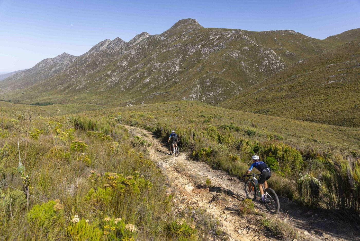 “Climbing the Safranriver Valley in a southerly direction, you will pass the ruins of the old Blue Hotel, a stopover point for pioneers traversing the kloof in the days before motor vehicles. I’m sure the fastest riders won’t notice, but if you’re not racing, you’ll even be able to see the old stalls where travellers’ horses were stabled overnight. The route then joins the dual track long-time participants in the Hell of the South are familiar with and climbs towards the King and Queen of the Mountain hotspot at the summit of the Attakwaskloof Pass.”