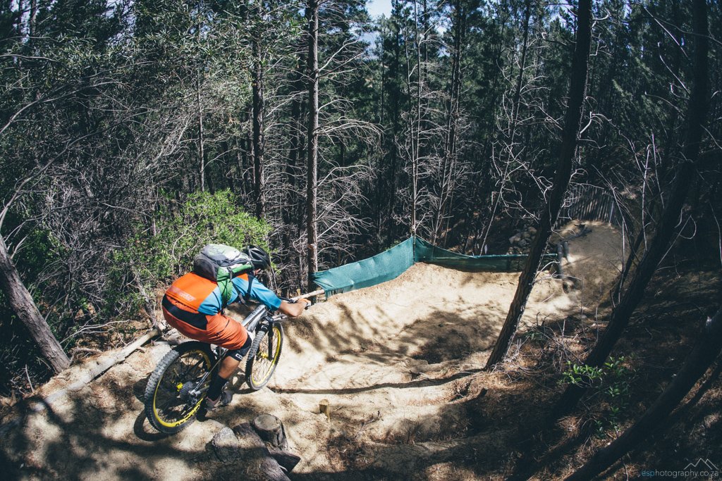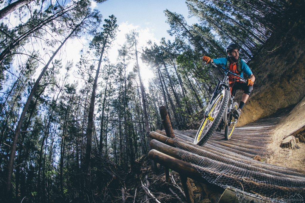 Nestled between the lower slopes of the majestic towering peaks of the Du Toitskloof Pass, the 4-star boutique hotel serves as base and starting point for the three trail options. With 80% of the trails snaking through the dense pine forest, some much needed shade is provided during the scorching summer months, but it’s a double edged sword as the winter rains turn things slippery very quickly. A-line (and to a lesser extent B-line) is recommended only for very experienced and skilled riders and longer travel bikes are essential as some of the features would feel well and truly at home on an international downhill course. For the less experienced, the Enduro trail features super fast, fun and flowy singletrack, with some tight switchbacks thrown in for good measure, winding all the way from the top of the trail network back to the hotel. 50 bucks and a signed waiver gets you all-day access to 24km of pedaling and some stunning views, hopefully with more to be added in the near future.