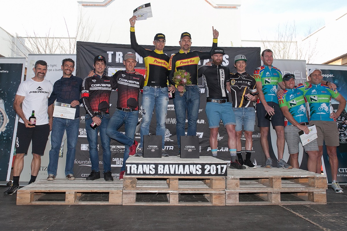 A week after the Trans Baviaans Race was won by the youthful team of Matt Beers and Tim Hammond, the experienced duo of Riccardo Stermin and Andreas Studer (Team Power Bar) took victory in the Trans Baviaans Repeat the pair clocked 9 hours 43 minutes and 7 seconds.