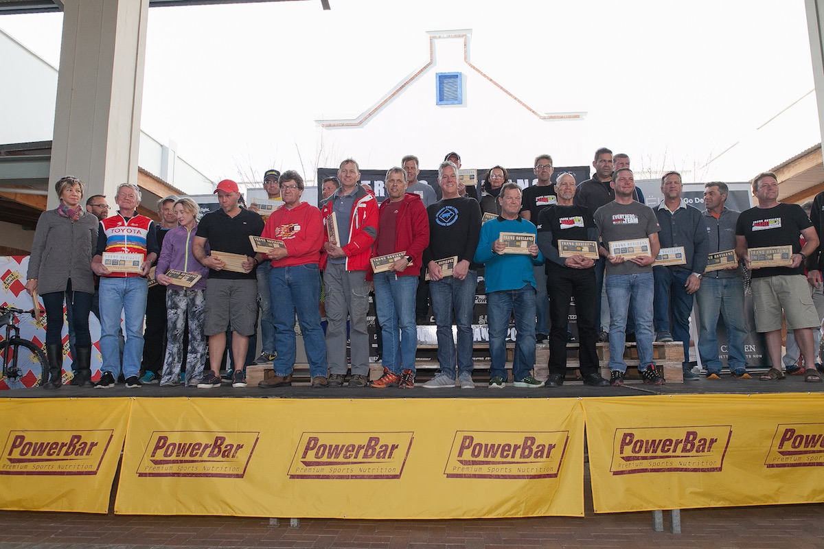 Mens podium at The Repeat with winners PowerBar – Ricardo Sternim & Andreas Studer, 2nd Cadence Tygervalley – Johan Coetzee & Jan Malan, 3rd Coimbra1 – Vickus Boshoff & JP Gerber, 4th Rudolf Pretorius, Klaas Meintjies and Rudolph Du Randt and in 5th Pure Event Gear with Pierre Grifieon and Dewald Lotter.