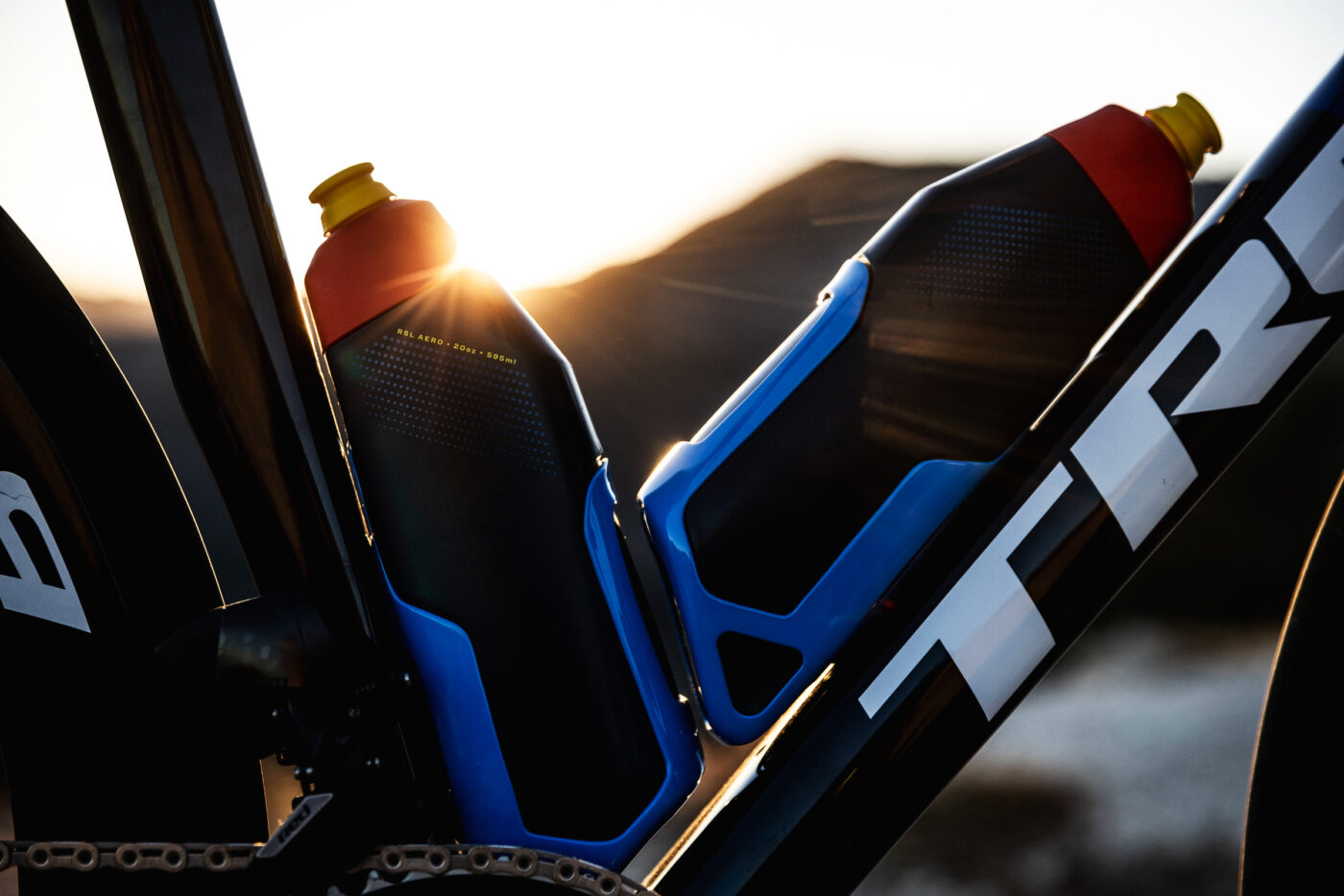 Included with Madone SLR Gen 8, the all-new Trek RSL Aero Bottles hold 20oz/595mL each, are BPA free, dishwasher safe, and work seamlessly with Madone Gen 8’s Full System Foil shaping to keep you fast (and hydrated) in the wind. The bottles fit perfectly flush into the included carbon RSL Aero Cages, which also work with a standard round bottle. The cages require a low-profile button-head bolt and are mounted via slots that allow you to move the cages up and down to achieve the most aero bottle position possible on any frame size. They will be available to purchase aftermarket for Madone SL Gen 8 riders.