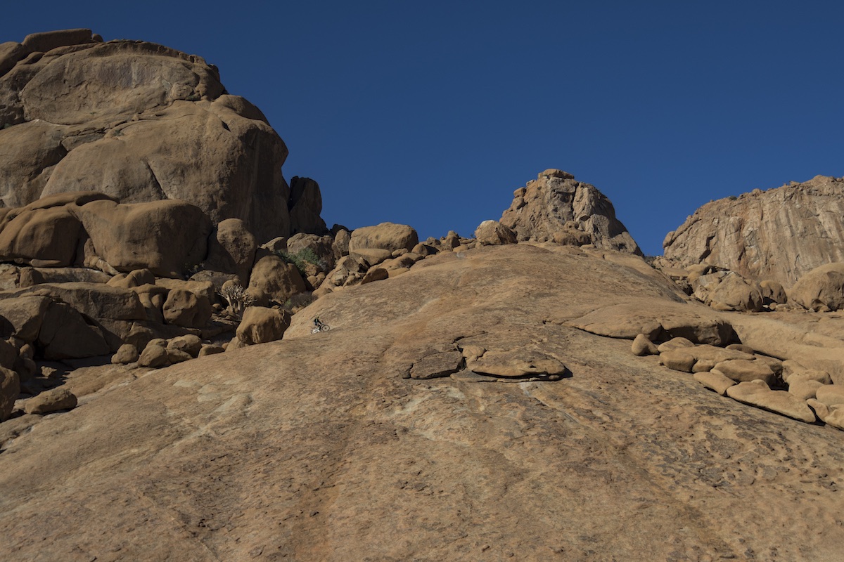 Arriving at the Spitzkoppe, we were blown away by the scale of the rock structures! A bit nervous and unsure, we walked up the first section that looked ridable, and soon we had our confidence, spotting lines all over the place. Experiencing a new type of mountain biking, new terrain, and learning how our bikes best handled the granite surface was totally enjoyable.